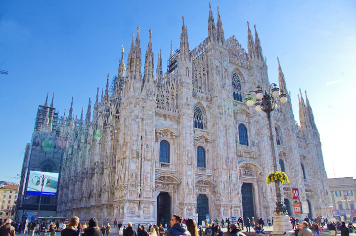 Kent merkezinde yer alan tarihi yapıları ve geçmişi yaşatan caddeleri hesaba katmazsak, Milan daha çok kültürel zenginliği ve sosyal yaşamıyla gündeme gelen bir kenttir diyebiliriz. Piazza Del Duomo’da yer alan ve yapımına 1386 yılında başlanan Duomo, dünyanın en büyük kiliselerindendir. Kilise, kentte bulunan en ünlü kutsal yapıdır.
